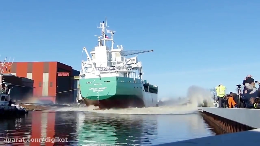 لحظه هراس انگیز به آب انداختن کشتی های غول پیکر
