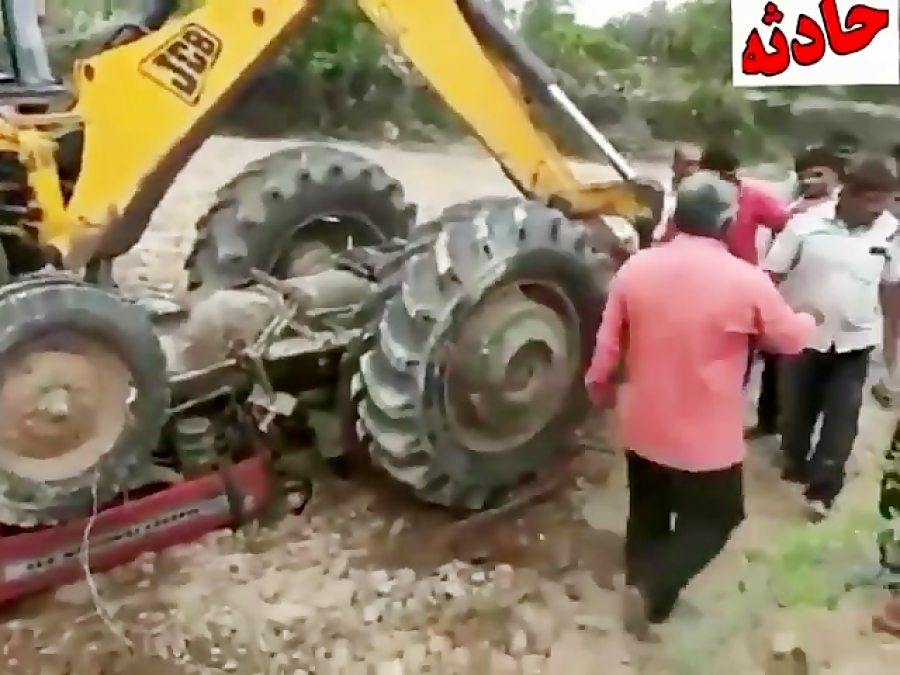 نجات معجزه آسای راننده از زیر تراکتور واژگون شده