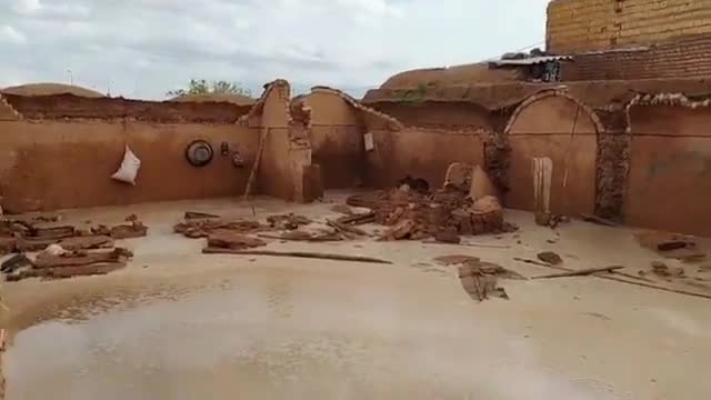لحظه فرو ریختن منزل مسکونی پس از ورود سیلاب