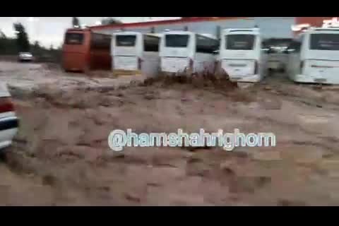 سیلاب وحشتناک عصر امروز قم؛ ابتدای جاده اراک