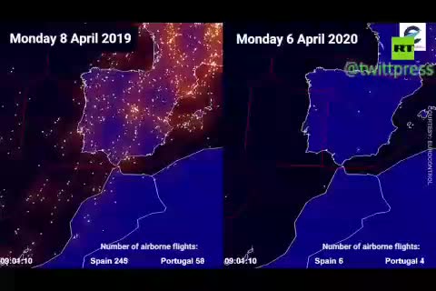 ترافیک هوایی جهان قبل از کرونا و حین شیوع کرونا را ببینید