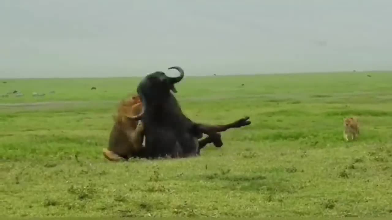 آموزش شکار بوفالو به شیر ماده توسط شیر نر