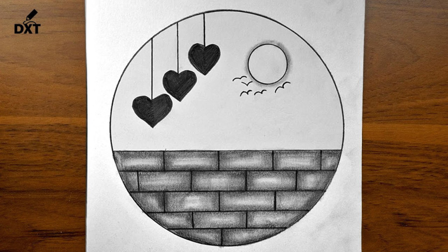 نقاشی ساده و آسان با مداد | نقاشی دایره ای قلب و دیوار