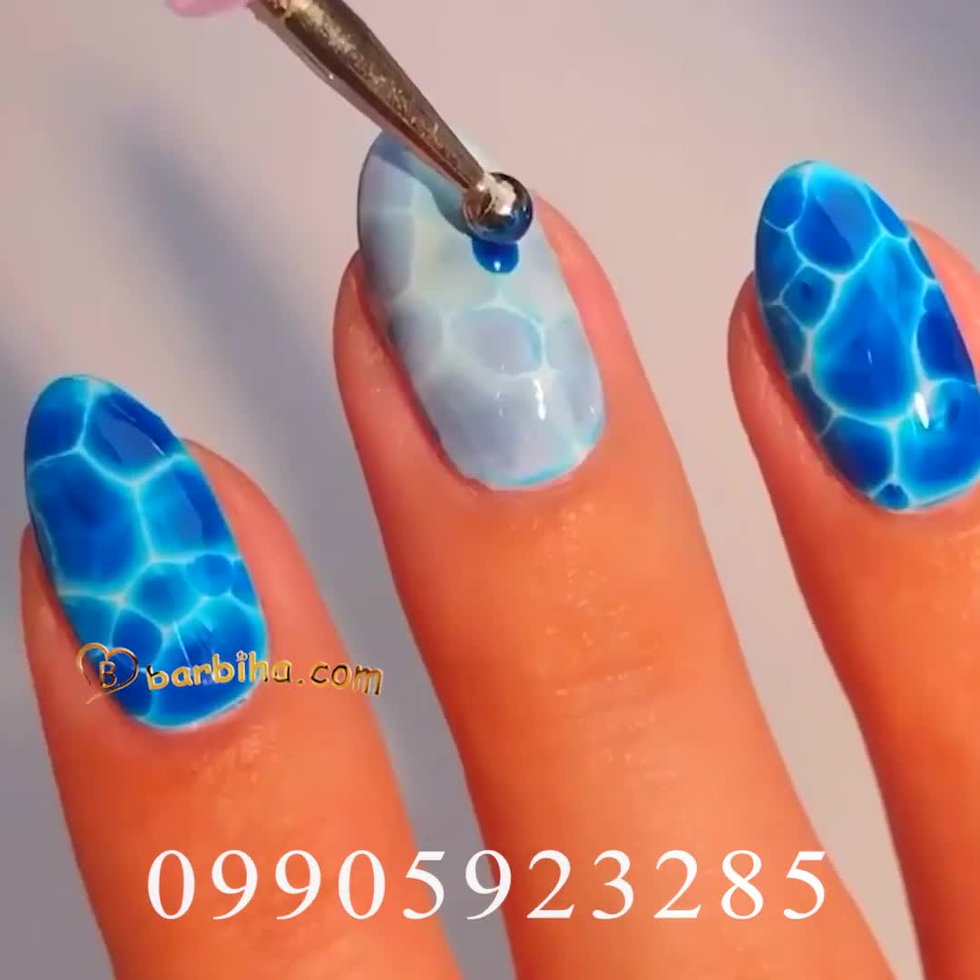 طرح ناخن آبی و سفید جذاب | ایده طرج ناخخن