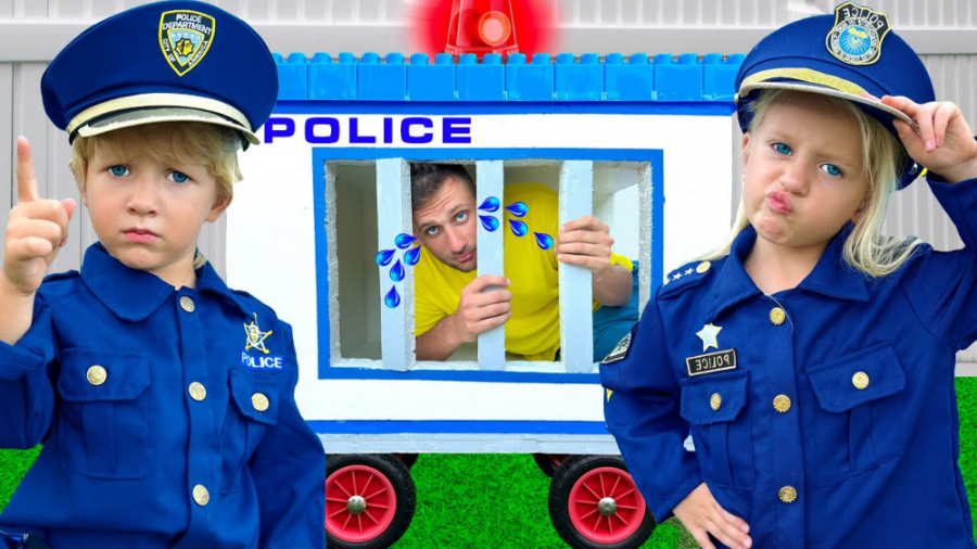 برنامه کودک کاتیا و دیما - دستکیر کردن یک دزد در ماشین پلیس - سرگرمی کودک