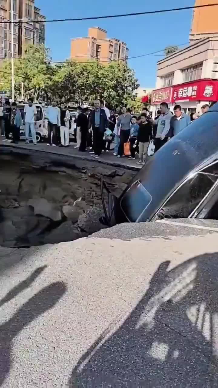 تصاویر عجیب از سقوط چندین خودرو در پی فرو نشست جاده!