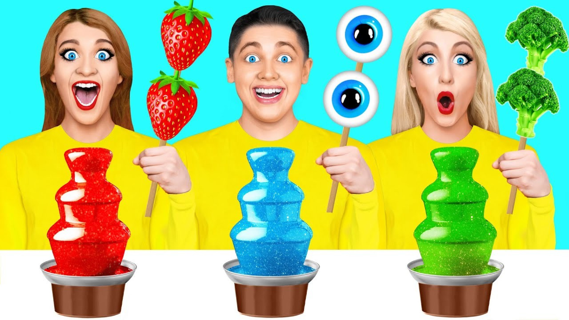 چالش غذایی جدید - چالش غذاهای رنگارنگ - فوندوی های چند رنگ - چالش غذا خوری جدید