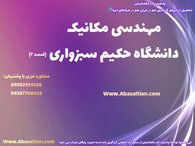 تحصیل تضمینی در مهندسی مکانیک با مدرک بین المللی | تحصیل رشته مکانیک در دانشگاه حکیم سبزواری