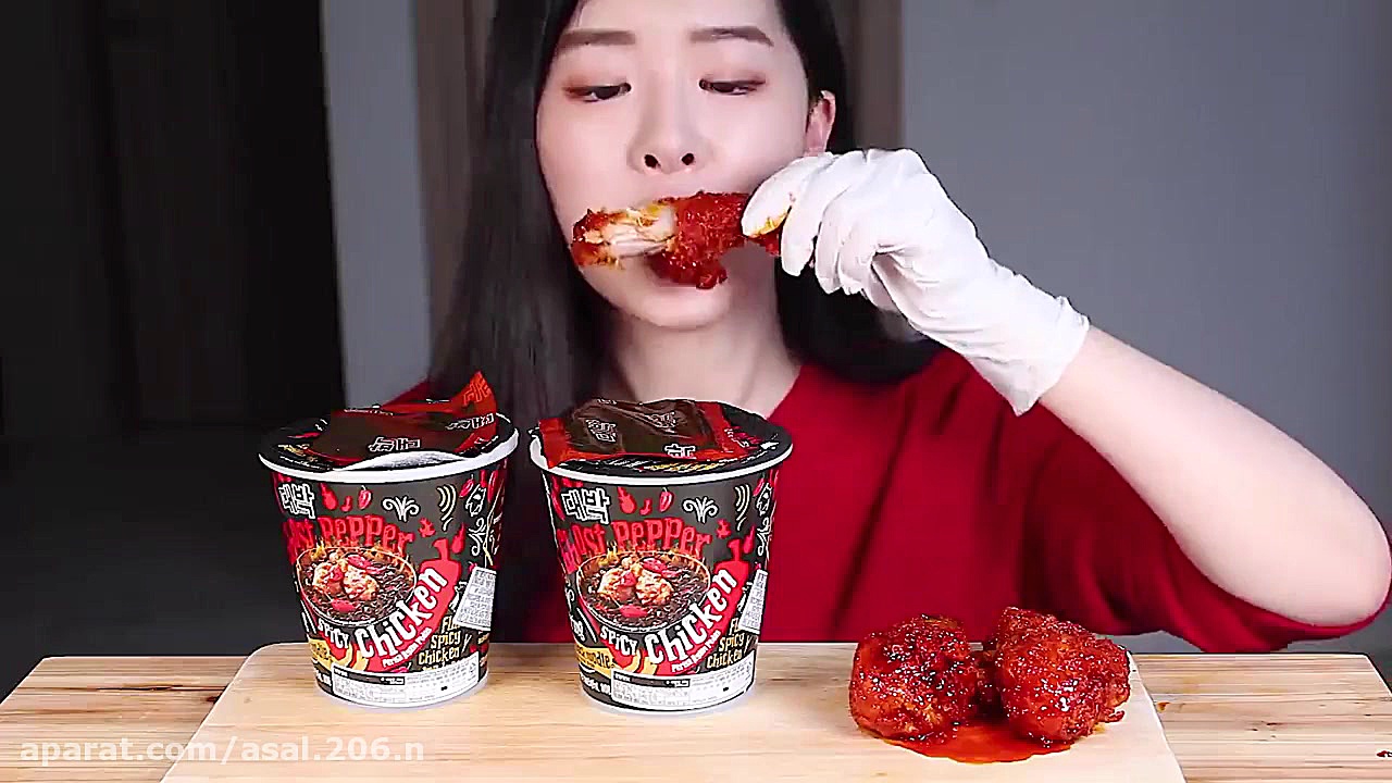 چالش فود اسمر{نودل و مرغ تند}follow=follow✨