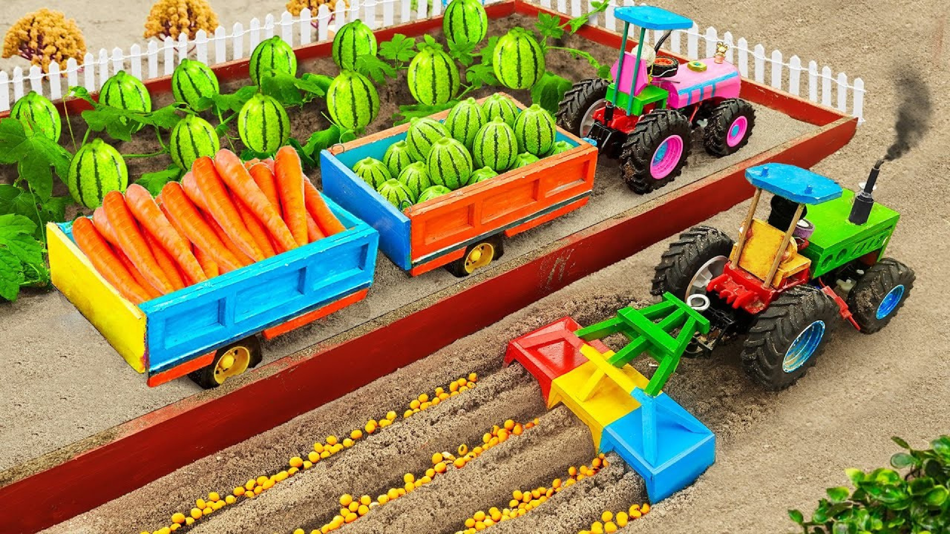 ماشین بازی کودکانه||تراکتور مزرعه و ساخت رنگین کمان||ماشین||ماشین بازی طولانی