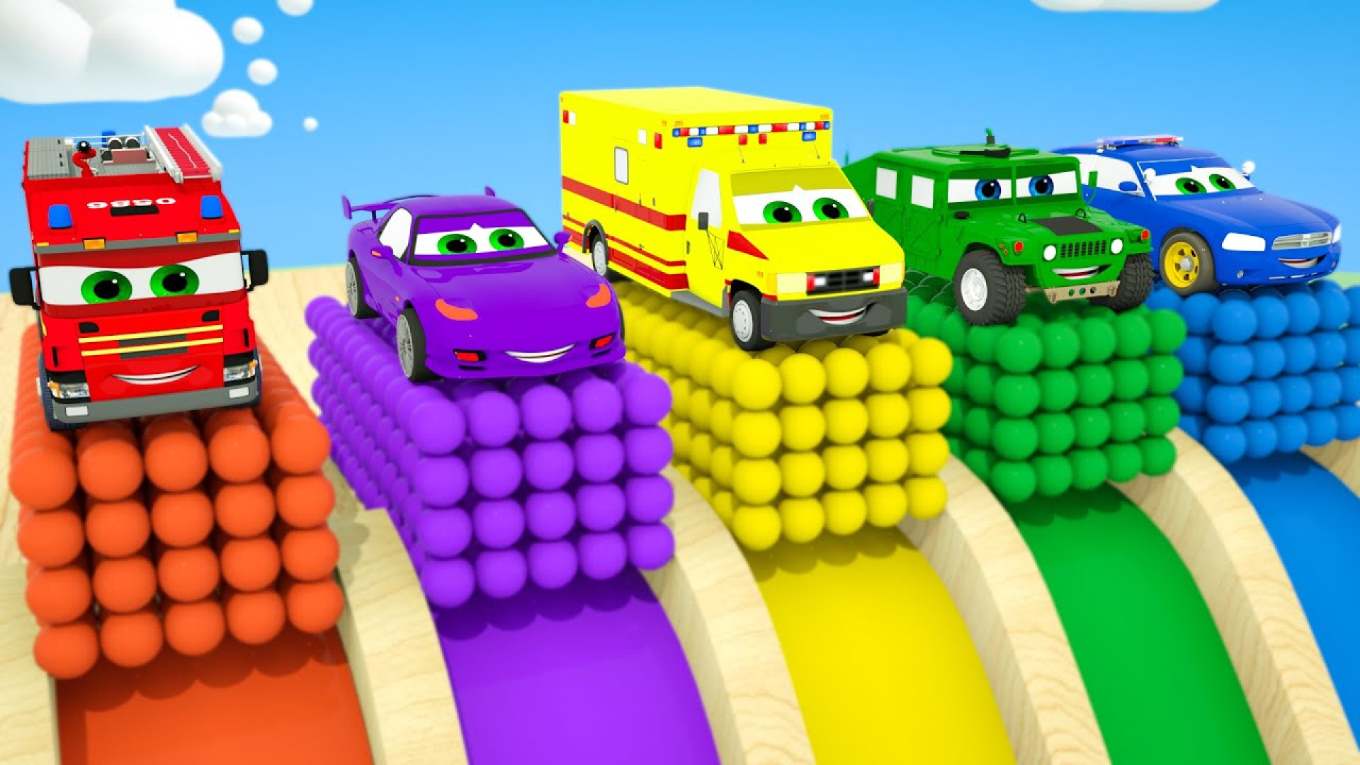 برنامه کودک ماشین ها ، ماشین های رنگی روی توپ های رنگی ، کارتون ماشین بازی