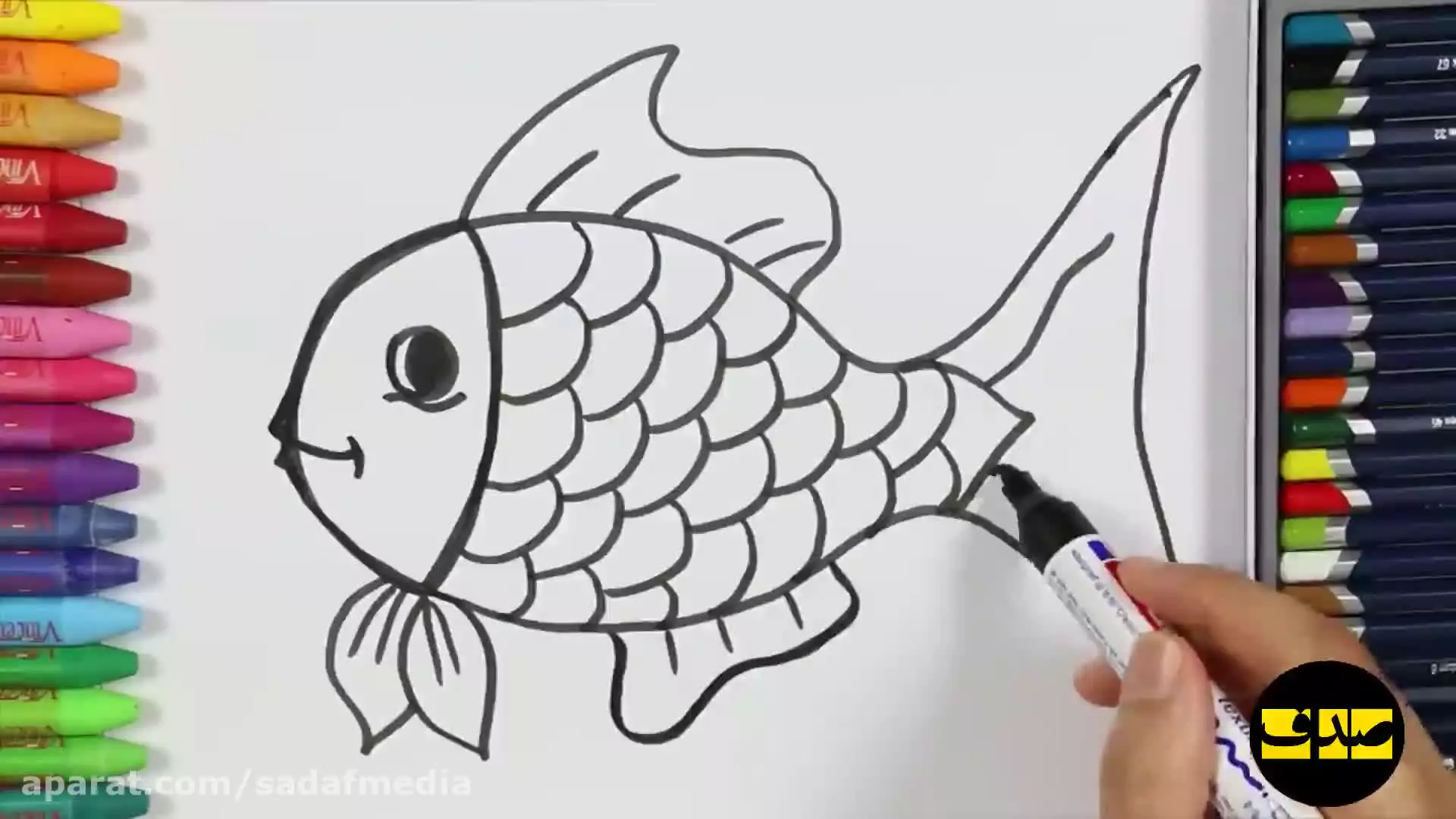 آموزش نقاشی کودکان -نقاشی ماهی رنگین کمان//نقاشی با ماژیک / نقاشی کودکان