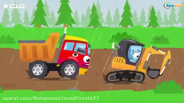 کارتون ماشین آتش نشانی قرمز به دنبال ماشین بنفش خلافکار