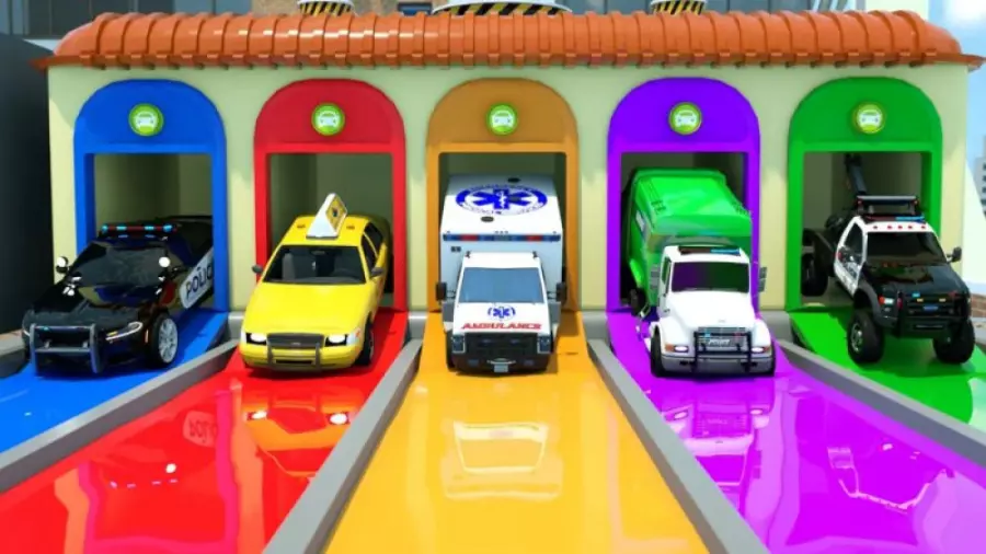 کارتون ماشین پلیس بزرگ - کمک ماشین آتش نشانی و آمبولانس به تاکسی زرد