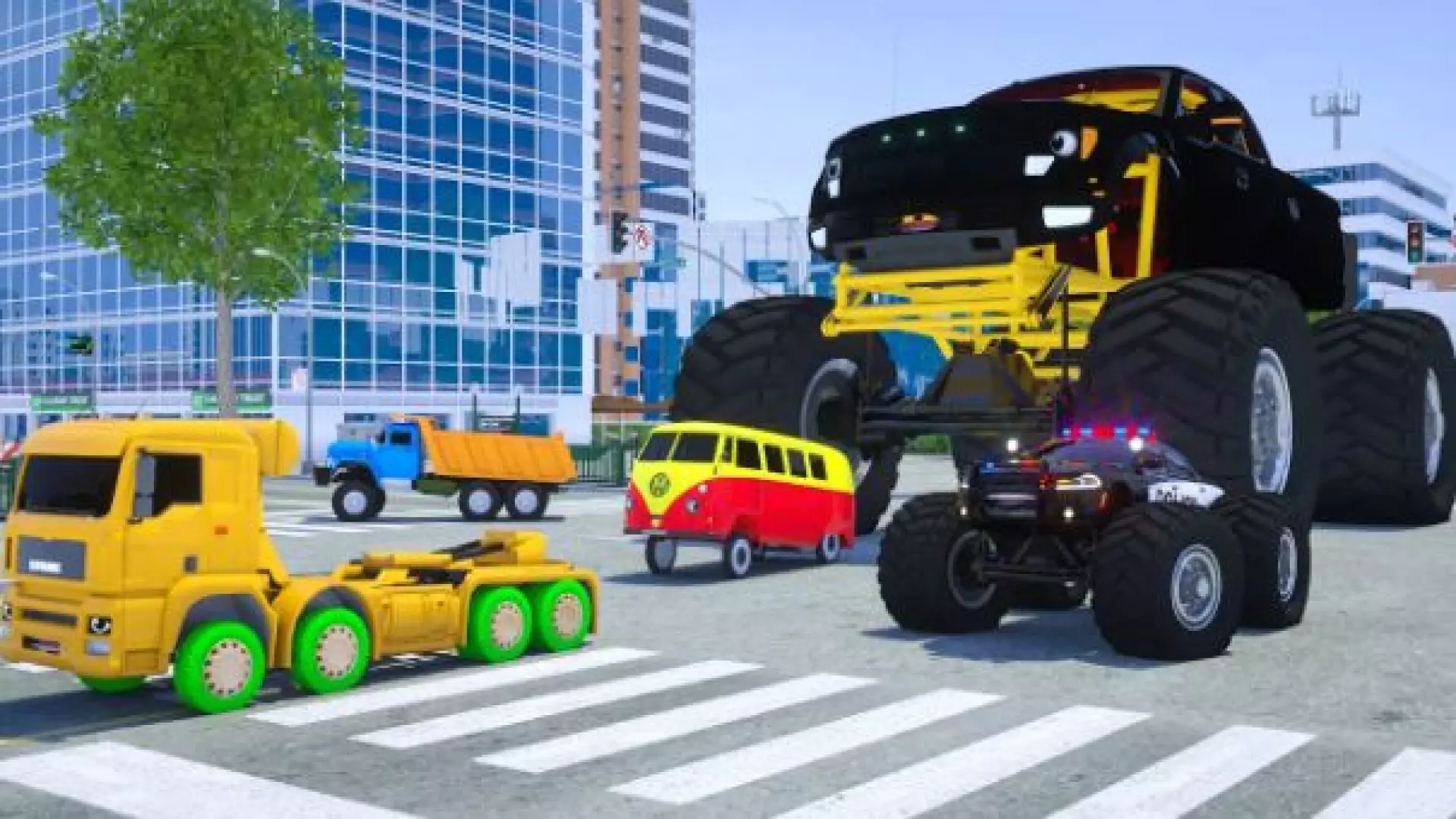 کارتون ماشین پلیس و کمک به تاکسی زرد - تعقیب و گریز ماشین پلیس و مانستر تراک