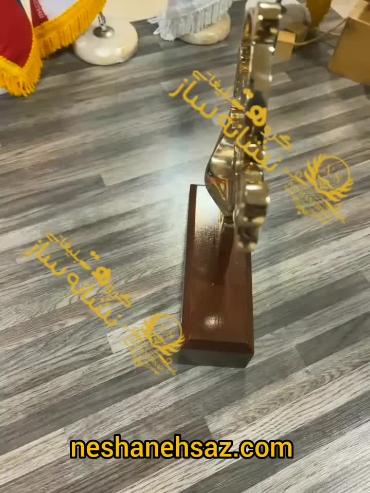 تندیس حجمی فلزی با آبکاری طلایی و پایه چوبی | ساخت سفارشی در نشانه ساز