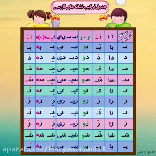 جدول ترکیب نشانه اُ - فارسی اول ابتدایی