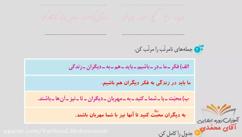 نگارش کلاس سوم دبستان - درس ۷ کار نیک صفحه 44-45-46 - درس 7 دوره ابتدایی