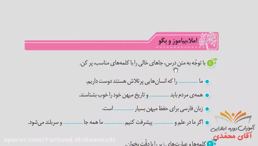 نگارش کلاس سوم دبستان - درس ۱۴ ایران آباد صفحه 80-81-82-83 سوم دوره ابتدایی