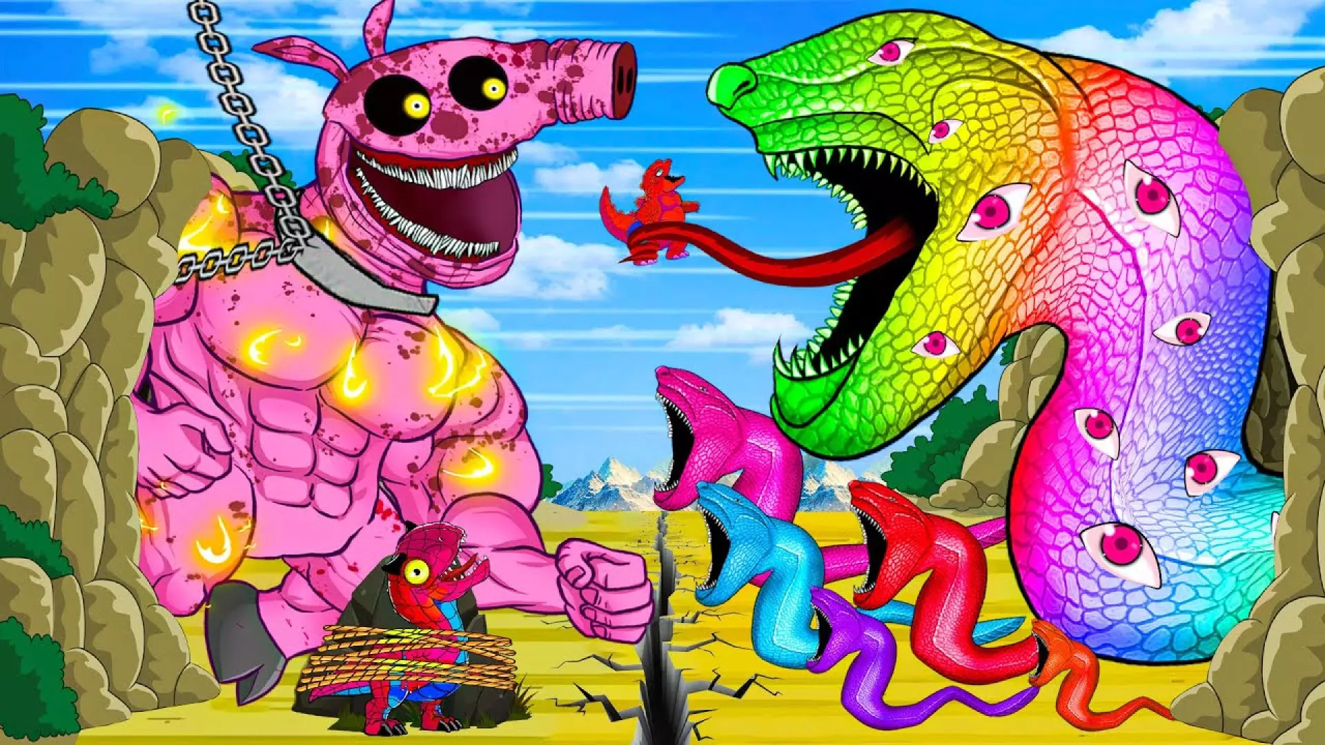 مگا گودزیلا در مقابل کنگ و ماجا و شین گیدورا | کارتون دایناسور ها