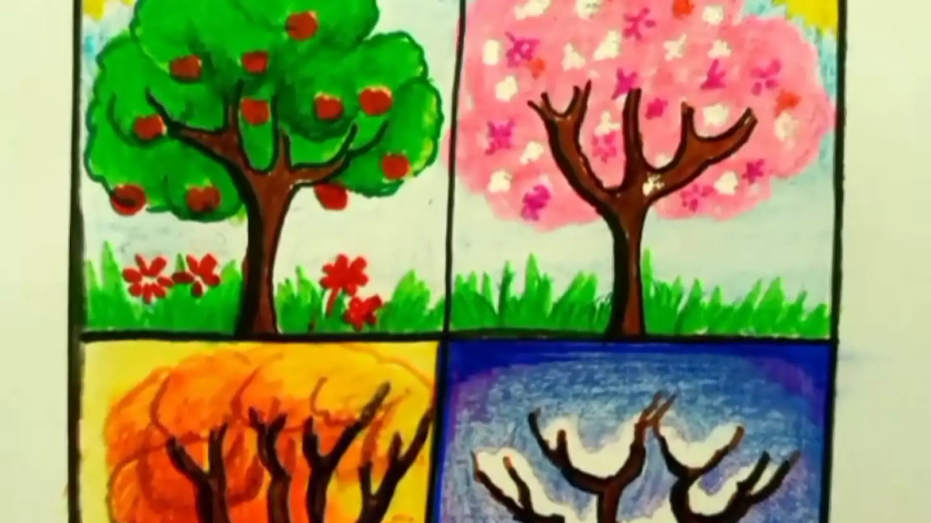 ایده نقاشی چهار فصل نقاشی بهار تابستان پاییز زمستان
