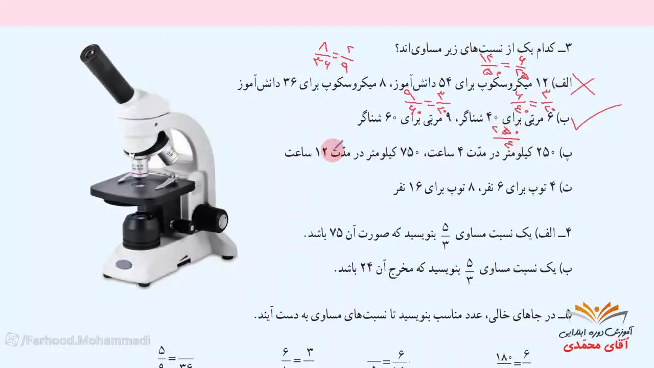 ریاضی کلاس پنجم دبستان - تمرین های صفحه 54-55 - پایه پنجم دوره ابتدایی
