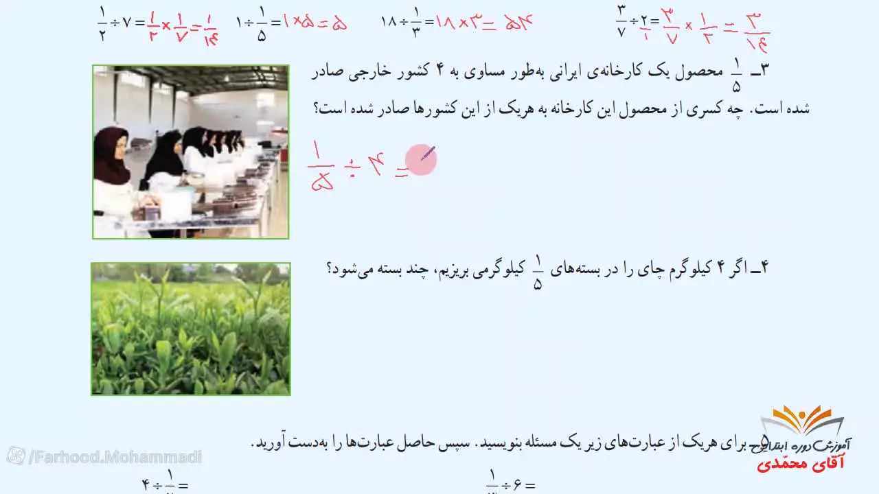 ریاضی کلاس پنجم دبستان - تمرین های صفحه 39 - پایه پنجم دوره ابتدایی