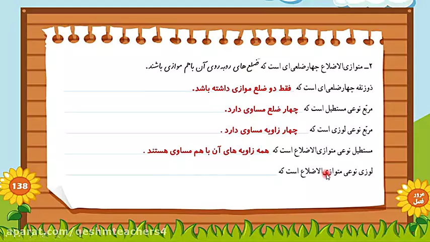 تدریس ریاضی کلاس چهارم صفحه 138 مرورفصل