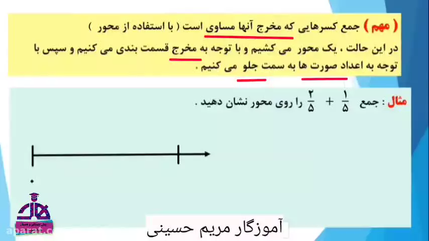 ریاضی کلاس چهارم _ جمع و تفریق کسر با استفاده از محور
