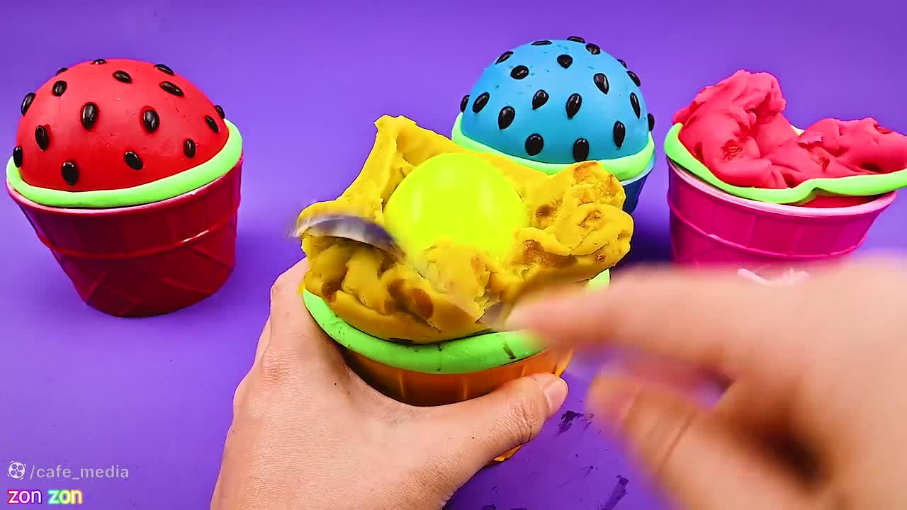 خمیربازی کودکانه :: فنجان بستنی هندوانه رنگین کمان