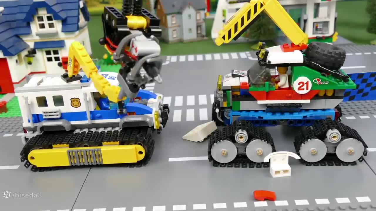 ماشین لگویی قهرمان - ماشین بازی کودکانه - لگو بولدوزر در مقابل بیل مکانیکی