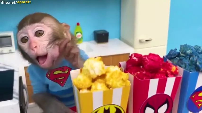 میمون کوچولو و کادوهای رنگارنگ در برنامه کودک میمون بازیگوش طولانی