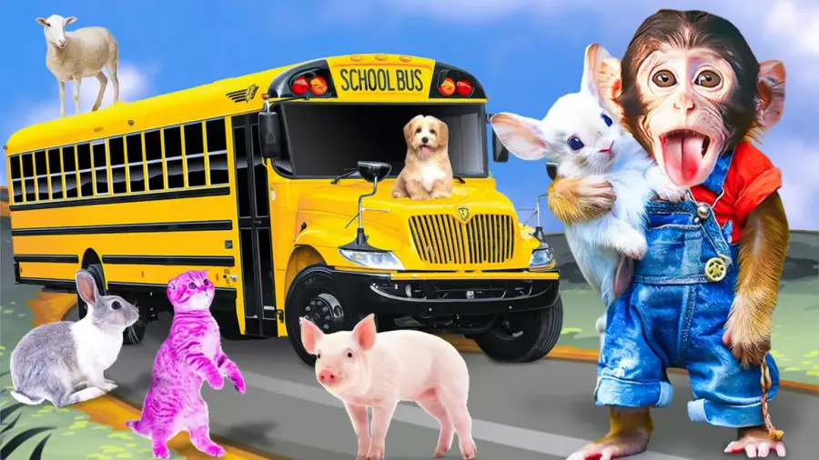 کارتون بچه میمون بامزه جدید | ماجراهای بچه میمون و اتوبوس مدرسه