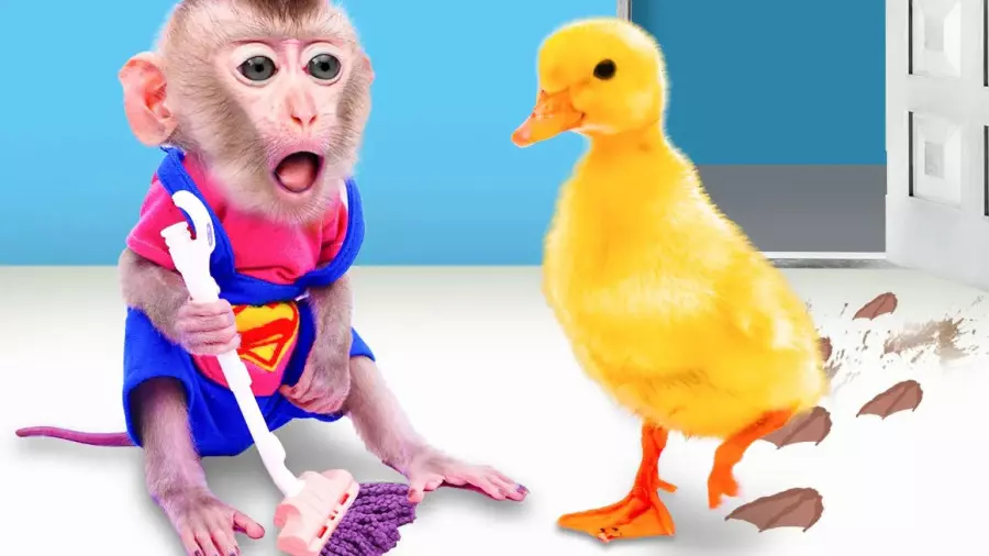 انیمیشن آموزشی میمون بازیگوش جدید | بچه میمون و جوجه اردک زیبا