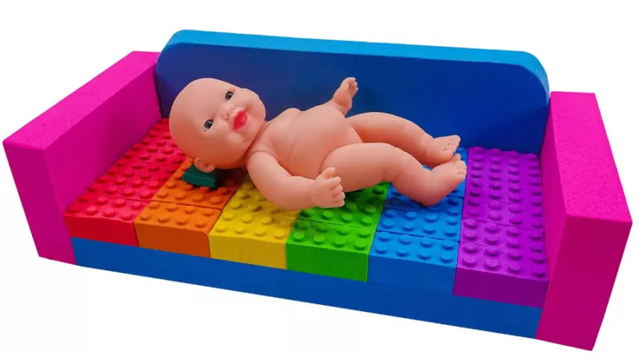 سرگرمی کودک در خانه با شن بازی نرم و رنگی مبل لگو رنگین کمان