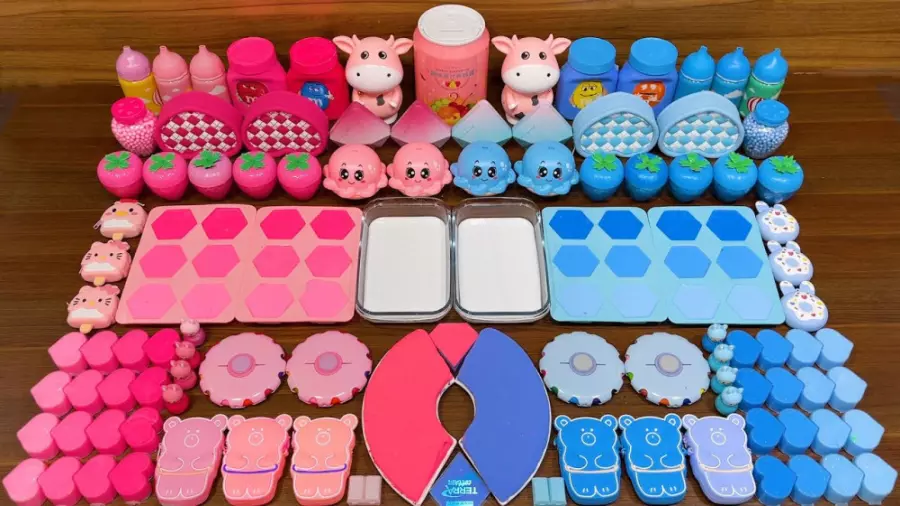 مخلوط کردن اسلایم های صورتی و آبی - آموزش ساخت اسلایم - اسلایم بازی کودکانه