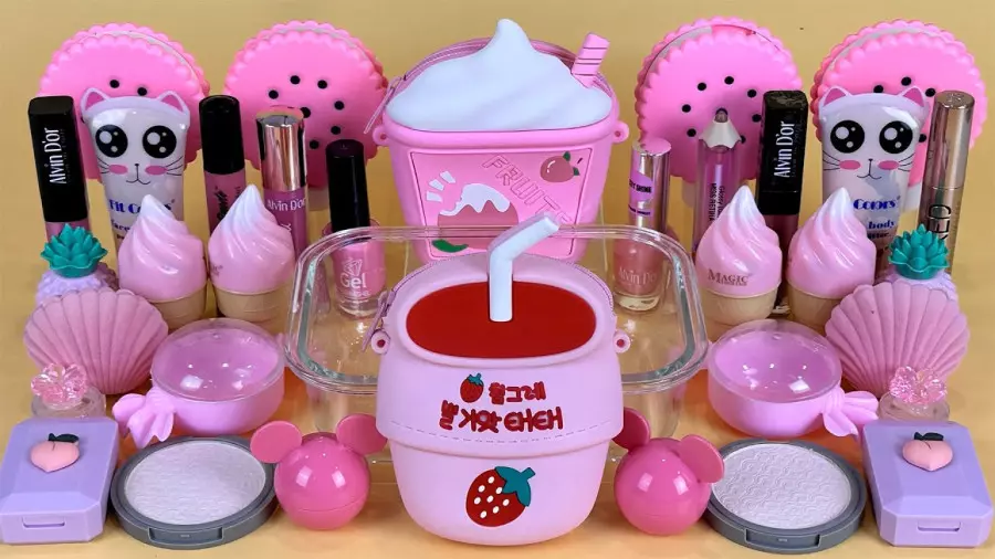 مخلوط کردن اسلایم صورتی کاراملی/آموزش ساخت اسلایم/اسلایم بازی جدید