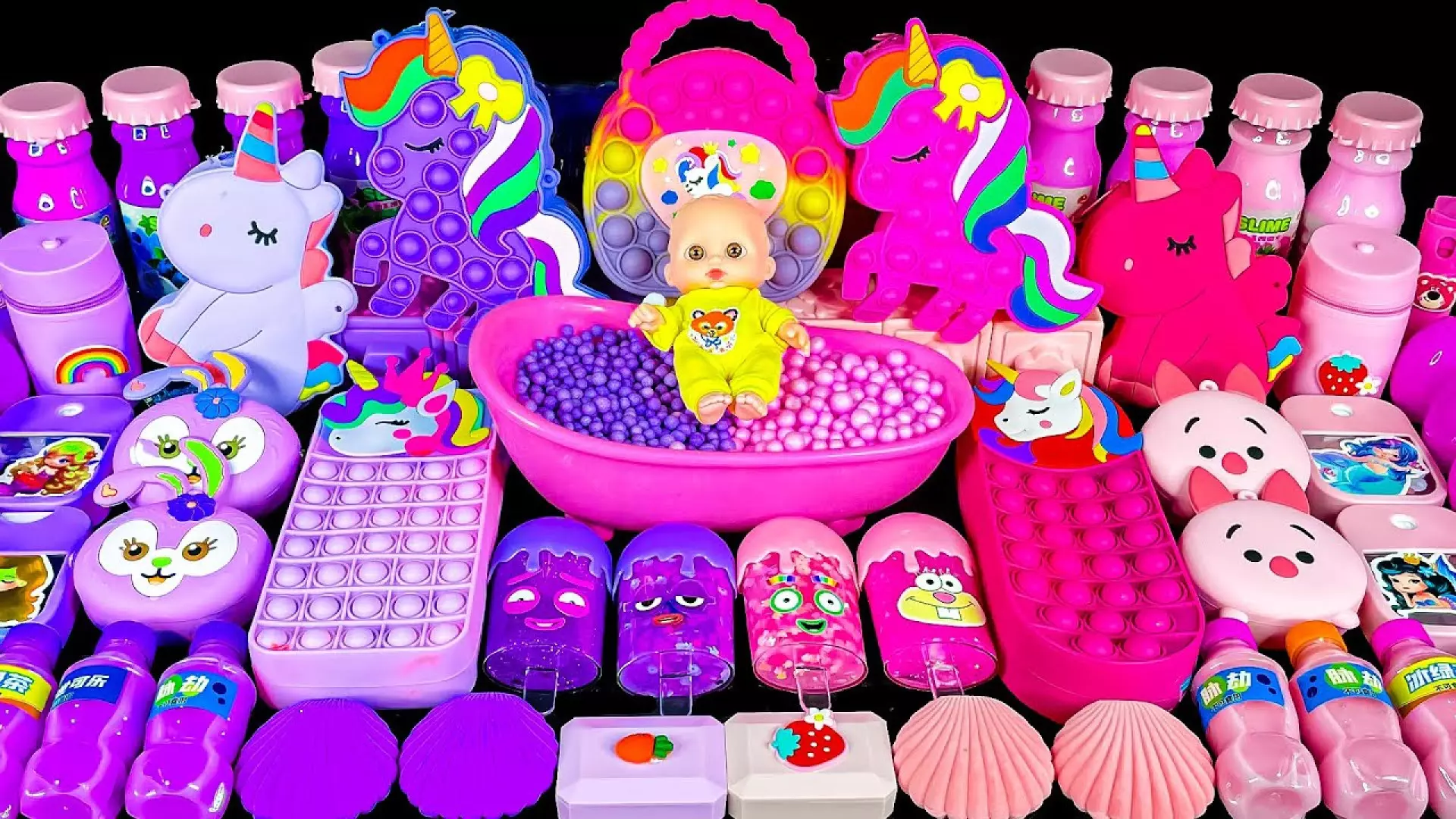 اسلایم پاپ ایت بنفش صورتی ، آموزش ساخت اسلایم ، اسلایم یونیکورن ، بازی با اسلایم