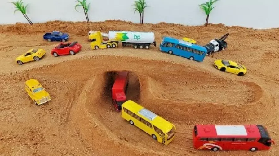 شن بازی برای کودکان | ماشین بازی | خاکبرداری با لودر و کامیون