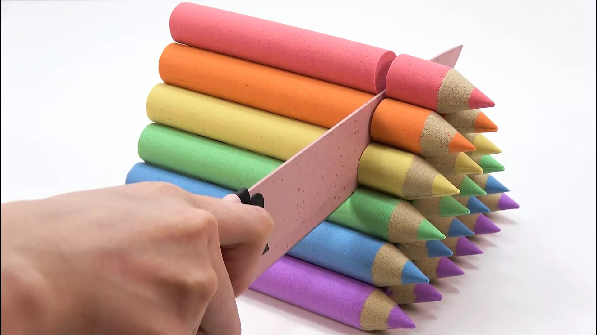 برش شن جنبشی جادویی مداد رنگی ها | چالش شن جادویی
