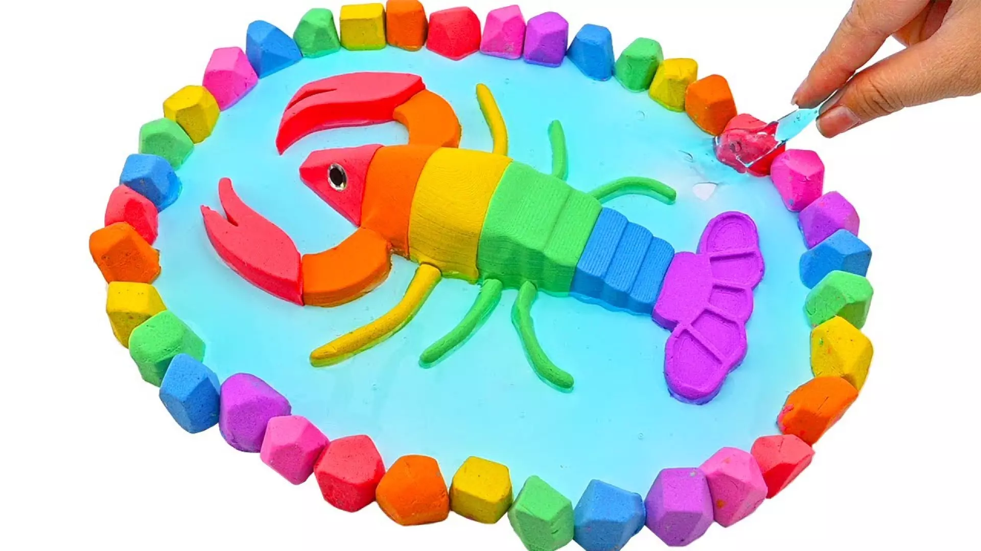 شن بازی | ساخت حوضچه و خرچنگ رنگین کمانی با شن جنبشی