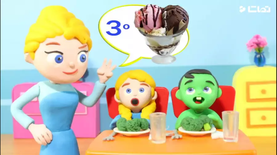 کارتون خمیر بازی کودکانه السا و آنا : غذاخوردن با مامان