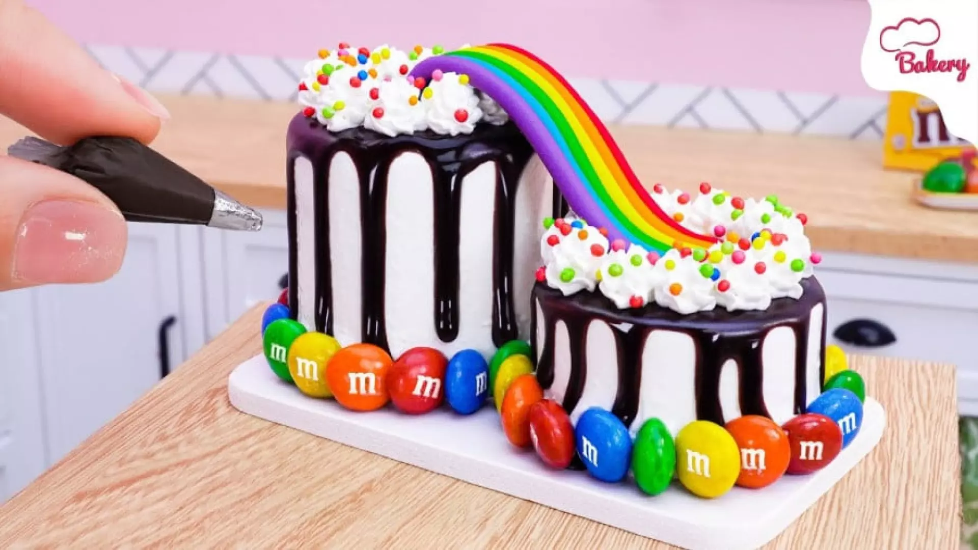 دستور پخت مینی کیک رنگین کمانی- کیک مینیاتوری آسان- کیک ریز شکلاتی