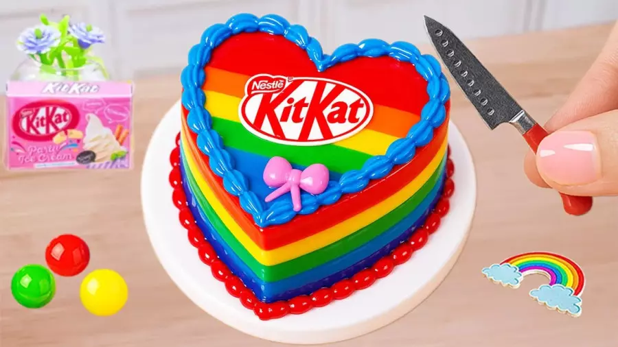 طرز تهیه کیک مینیاتوری قلب رنگین کمانی با شکلات | مینی کیک رنگین کمانی