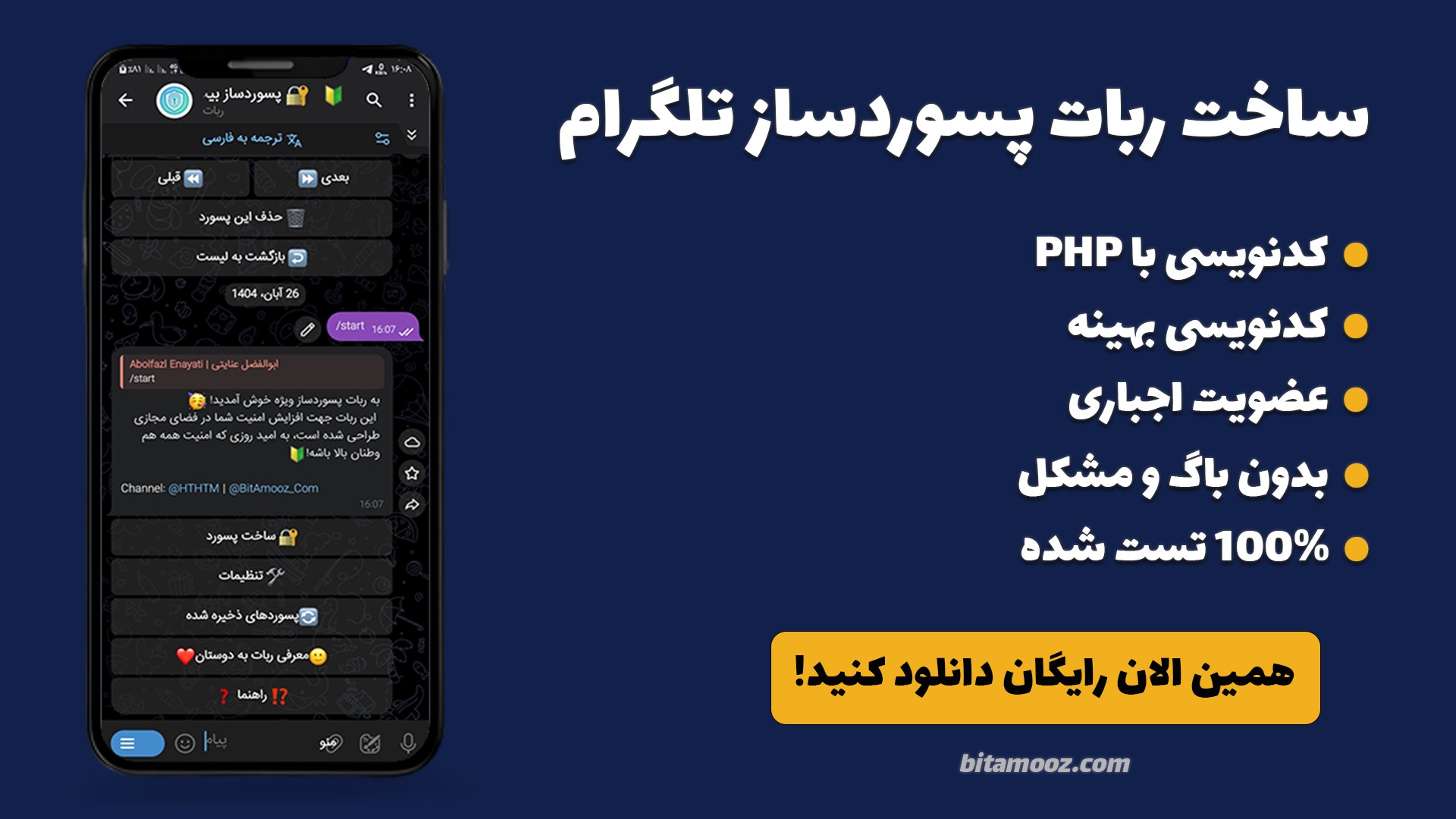 آموزش راه اندازی ربات پسوردساز تلگرام با عضویت اجباری + سورس رایگان