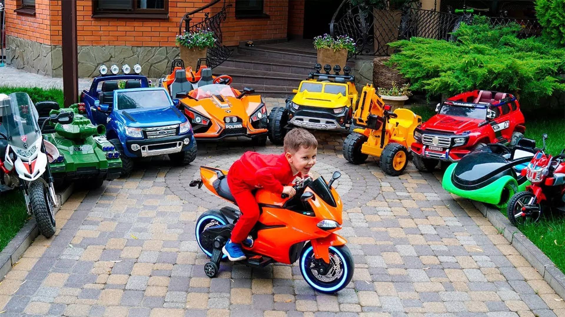بازی و سرگرمی کودک با اسباب بازی ماشین تراکتور، ماشین پلیس، تانک، دوچرخه اسپرت