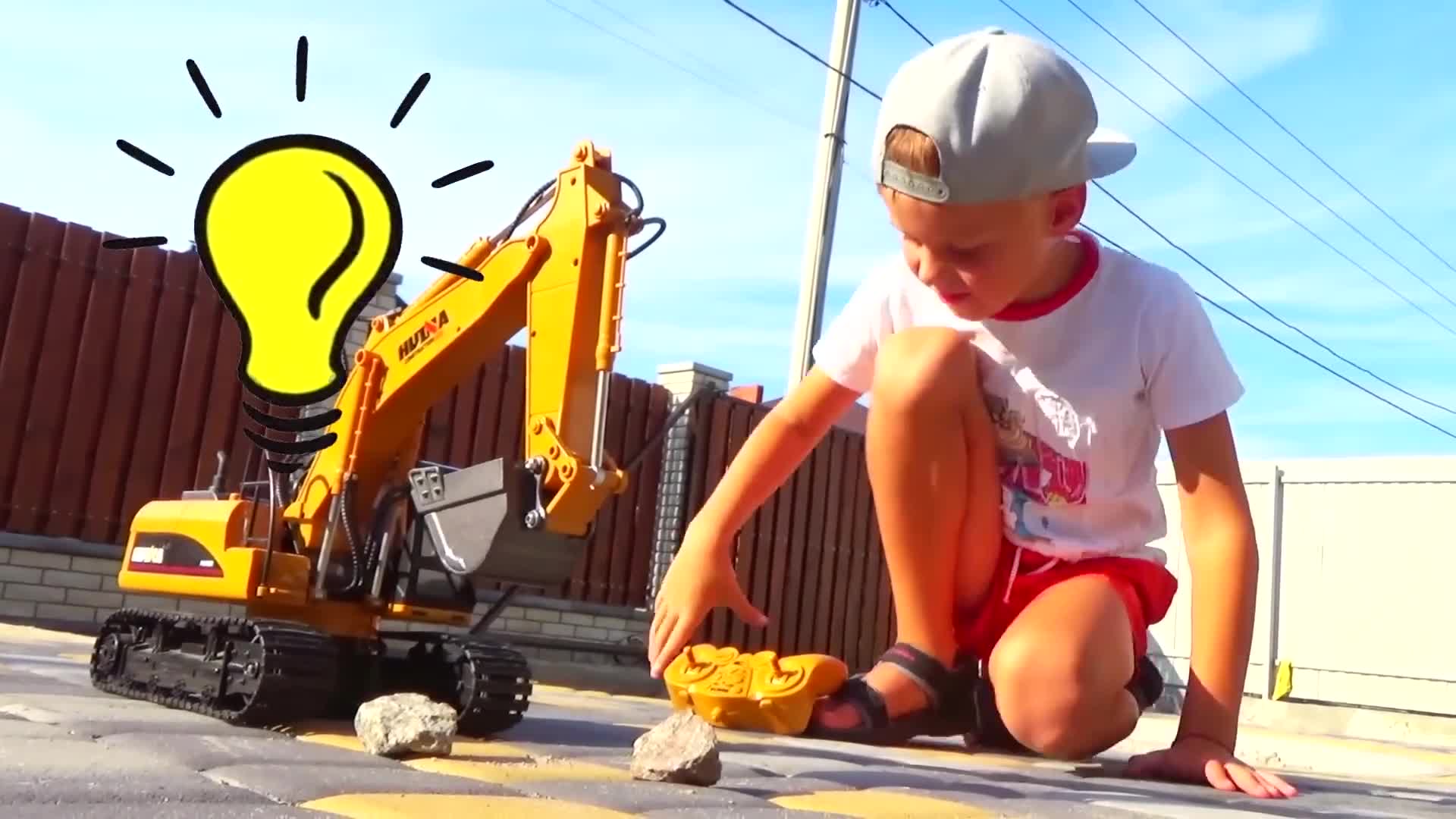 بازی پسر بچه با ماشین اسباب بازی تراکتور و بیل مکانیکی بزرگ - اسباب بازی کودک