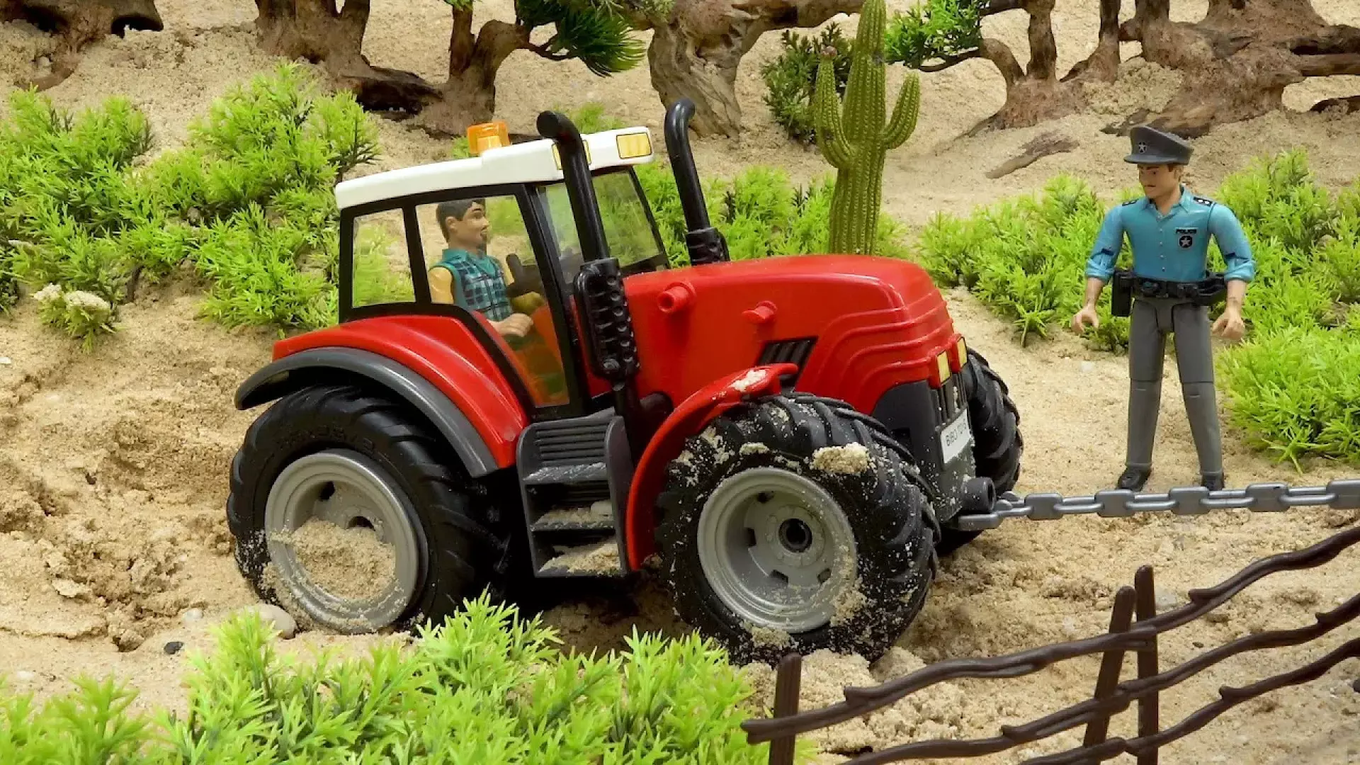 ماشین اسباب بازی/ تراکتور در شن گیر کرد/ ماشین بازی کودکانه/سرگرمی کودک