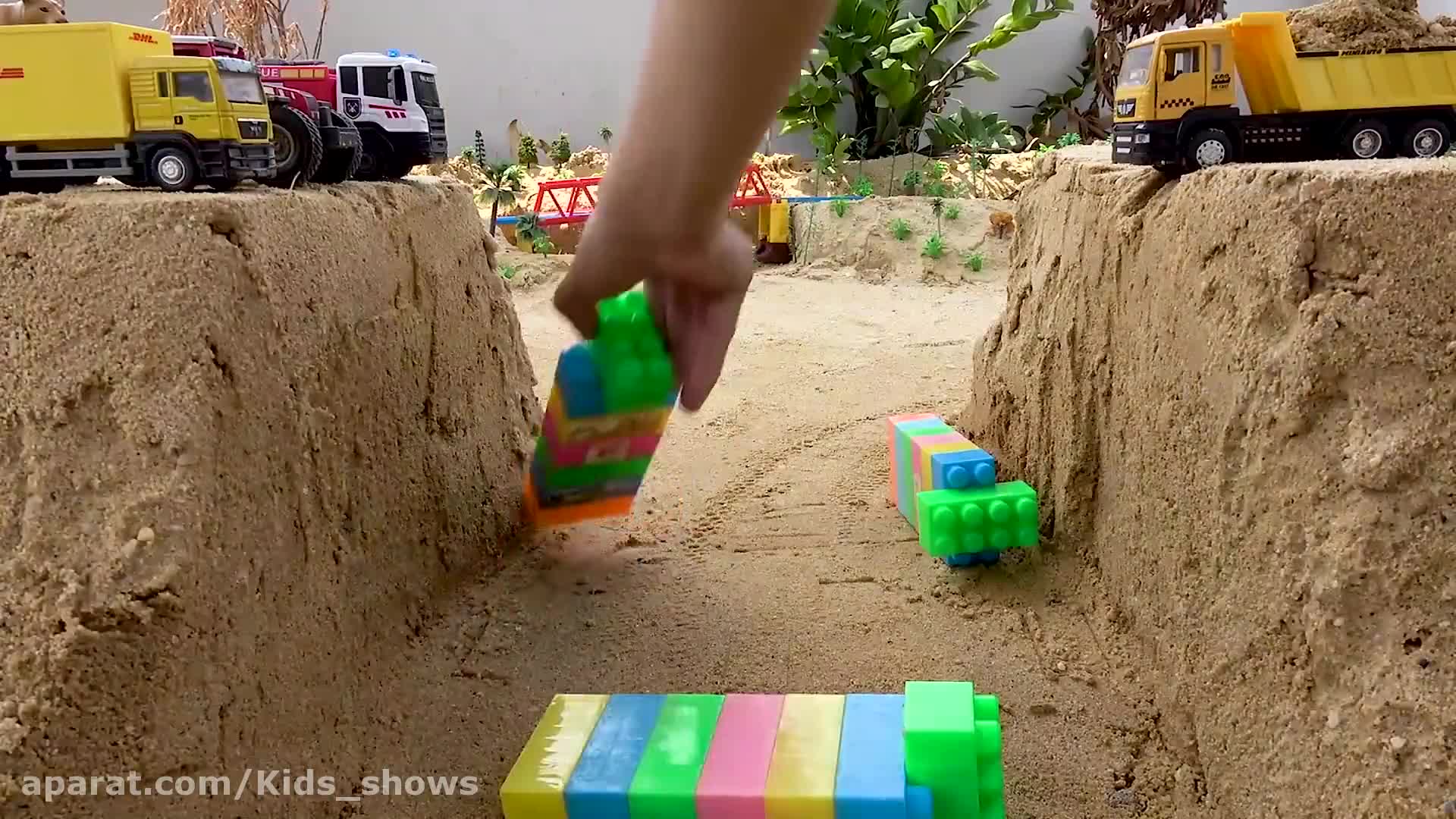 ماشین اسباب بازی - تراکتور بیل مکانیکی جرثقیل - ماشین بازی - ساخت پل ماشینی