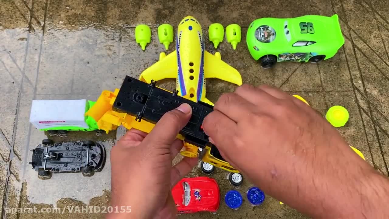 بازی با ماشین اسباب بازی مک کویین، ماشین میکسر، کامیون، هواپیما، کانتینر